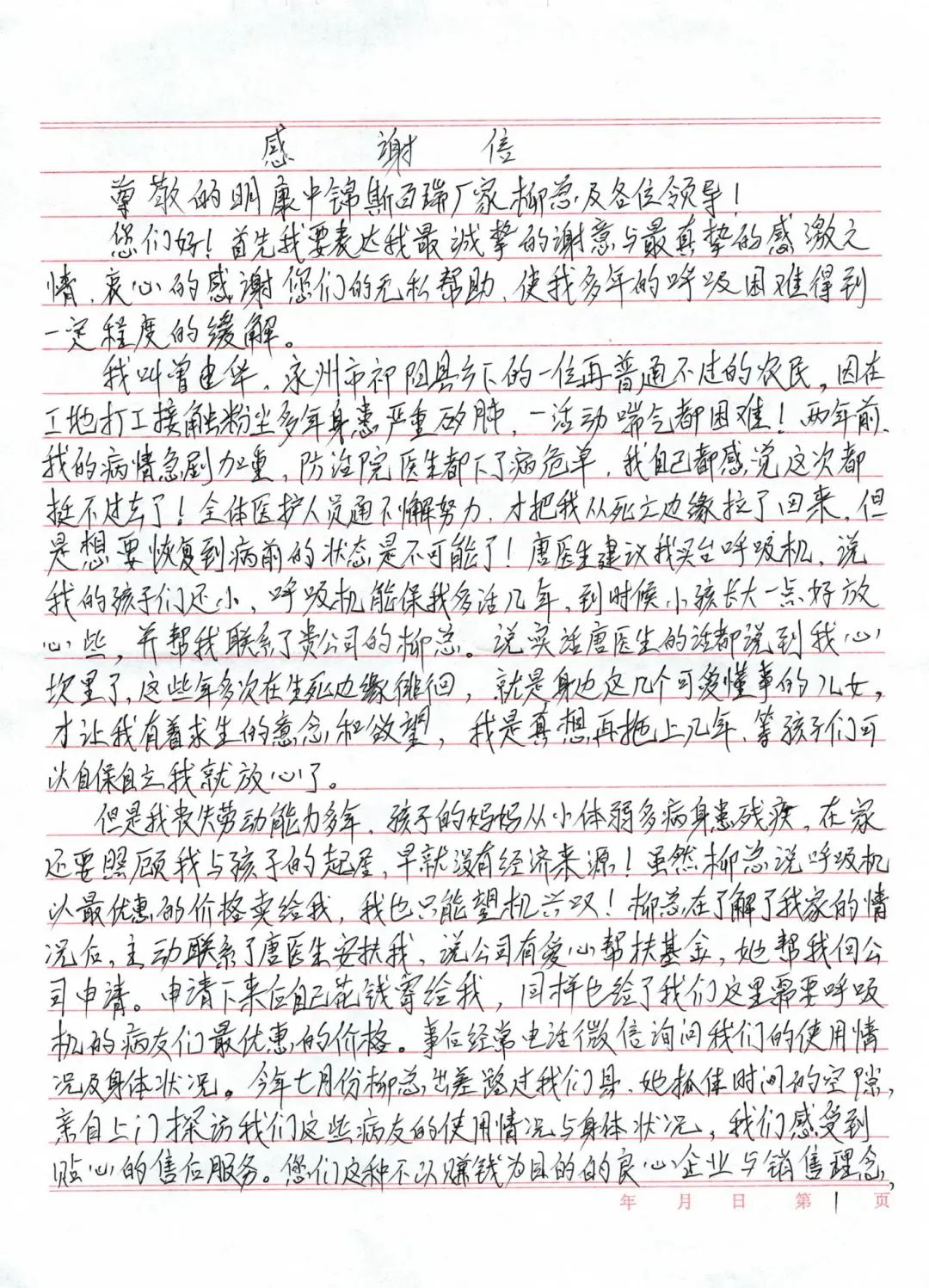 公司當(dāng)?shù)氐匿N(xiāo)售經(jīng)理當(dāng)時(shí)了解到曾大哥家中情況后,隨即便向公司申請(qǐng)愛(ài)心幫扶基金給他免費(fèi)寄了一臺(tái)公司的斯百瑞ST-30F無(wú)創(chuàng)呼吸機(jī)。