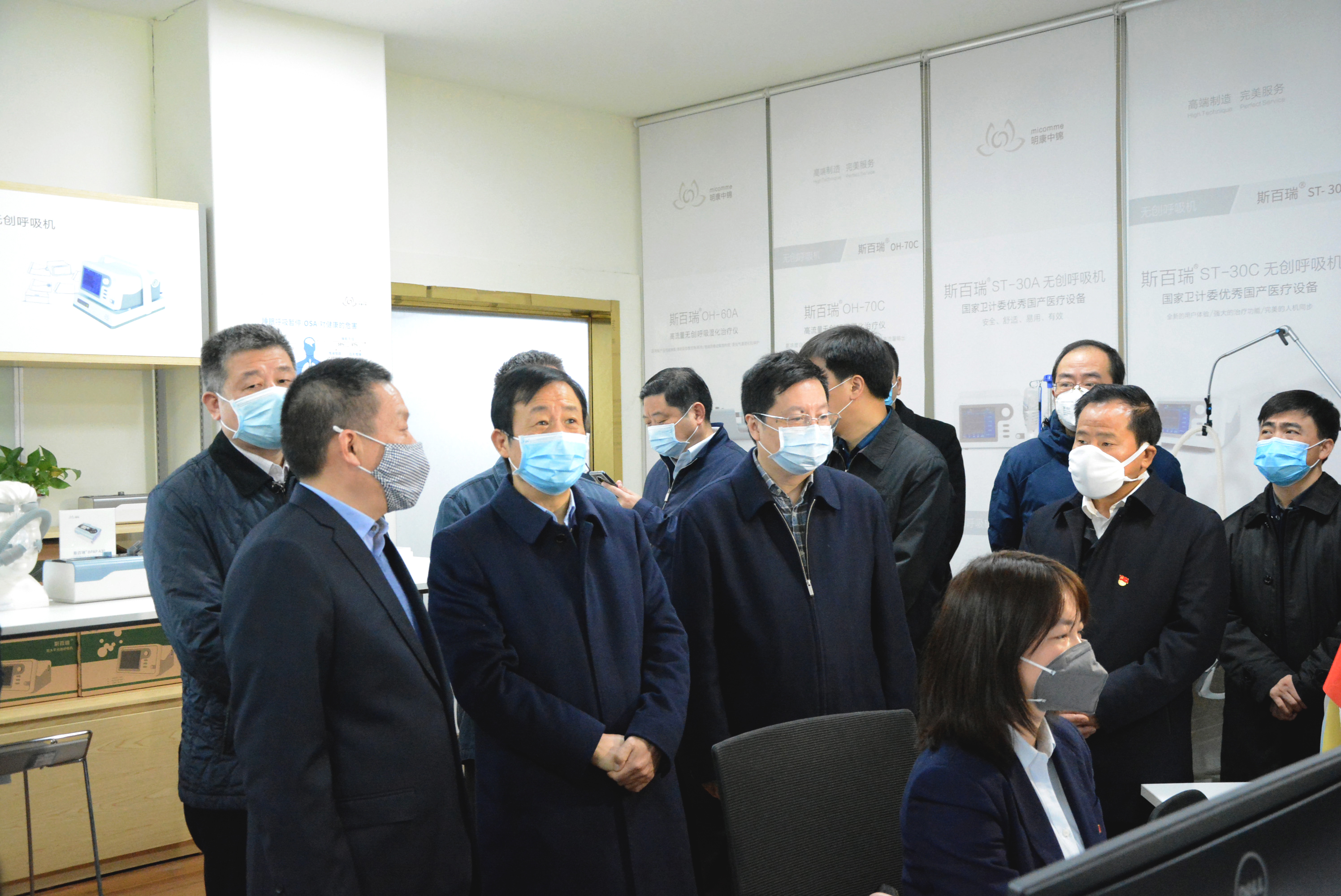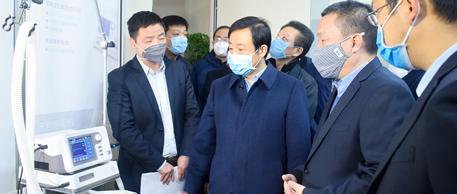 在云平臺數(shù)據(jù)中心,董事長戴征向許達哲省長一行介紹了公司產(chǎn)品生產(chǎn)和抗擊新型肺炎的具體工作情況。當許達哲省長了解到,明康中錦通過多年的科技創(chuàng)新成為全國唯一可以同時生產(chǎn)高流量無創(chuàng)呼吸濕化治療儀和醫(yī)用無創(chuàng)呼吸機的高科技企業(yè)之后,首先對明康中錦在研發(fā)創(chuàng)新和產(chǎn)學研合作方面取得的成績表示贊賞,同時指示公司要切實落實好國家防控指揮部和省委的要求,開足馬力生產(chǎn),為當前湖北、湖南乃至全國提供抗擊新型肺炎所急需的醫(yī)療設(shè)備,堅決打贏這場疫情防控阻擊戰(zhàn)。