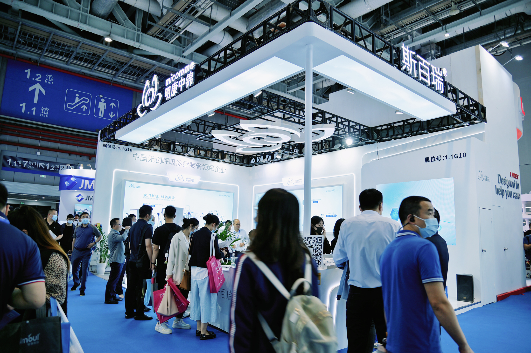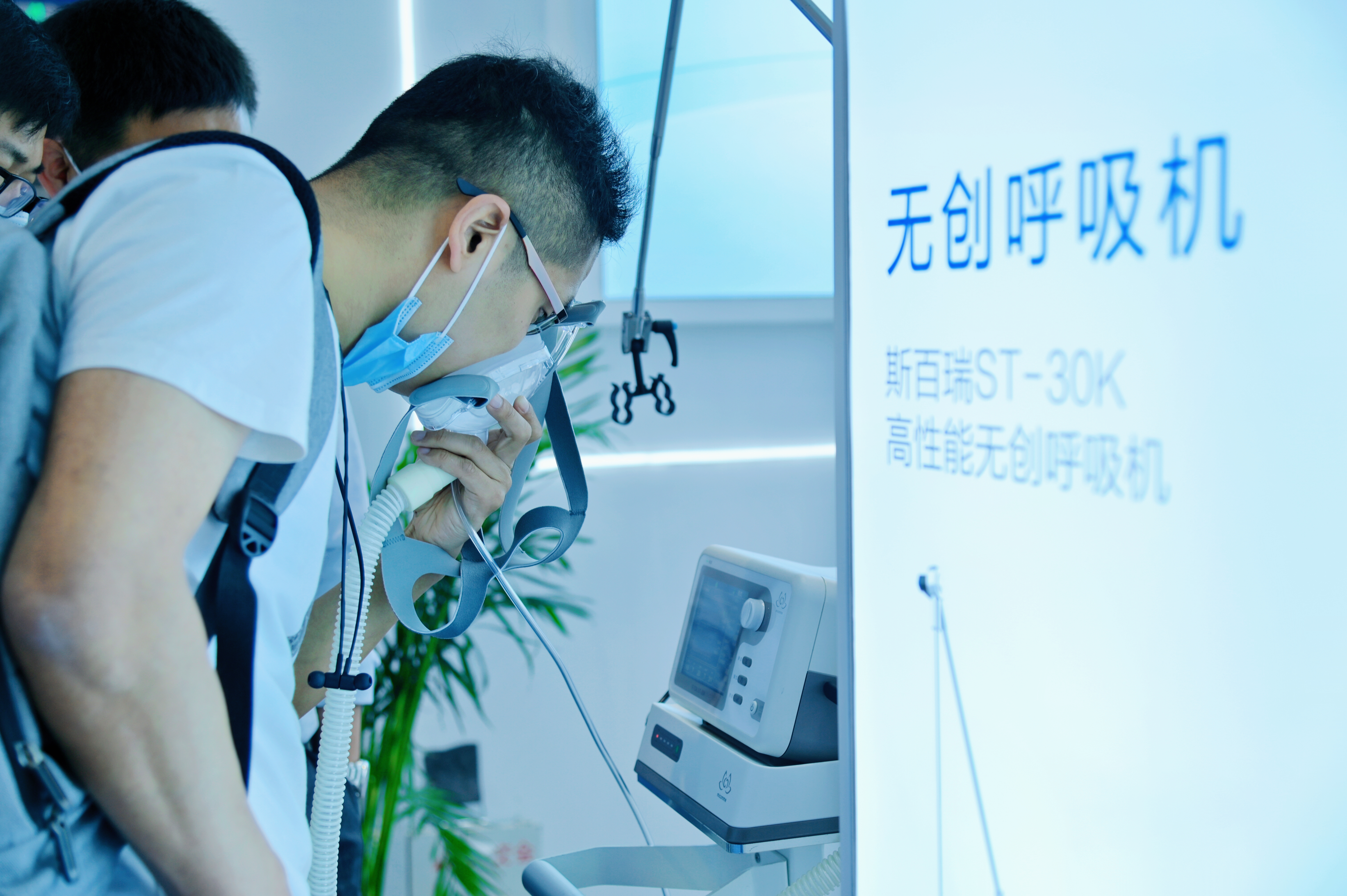明康中錦展位以“醫(yī)用群星 煥新而至、家用新銳 創(chuàng)領未來”為主題,涵蓋斯百瑞高性能醫(yī)用無創(chuàng)呼吸機、高流量無創(chuàng)呼吸濕化治療儀、家用無創(chuàng)呼吸機等產品展示區(qū),直觀展現(xiàn)了斯百瑞高端呼吸診療設備智能化的全面升級。