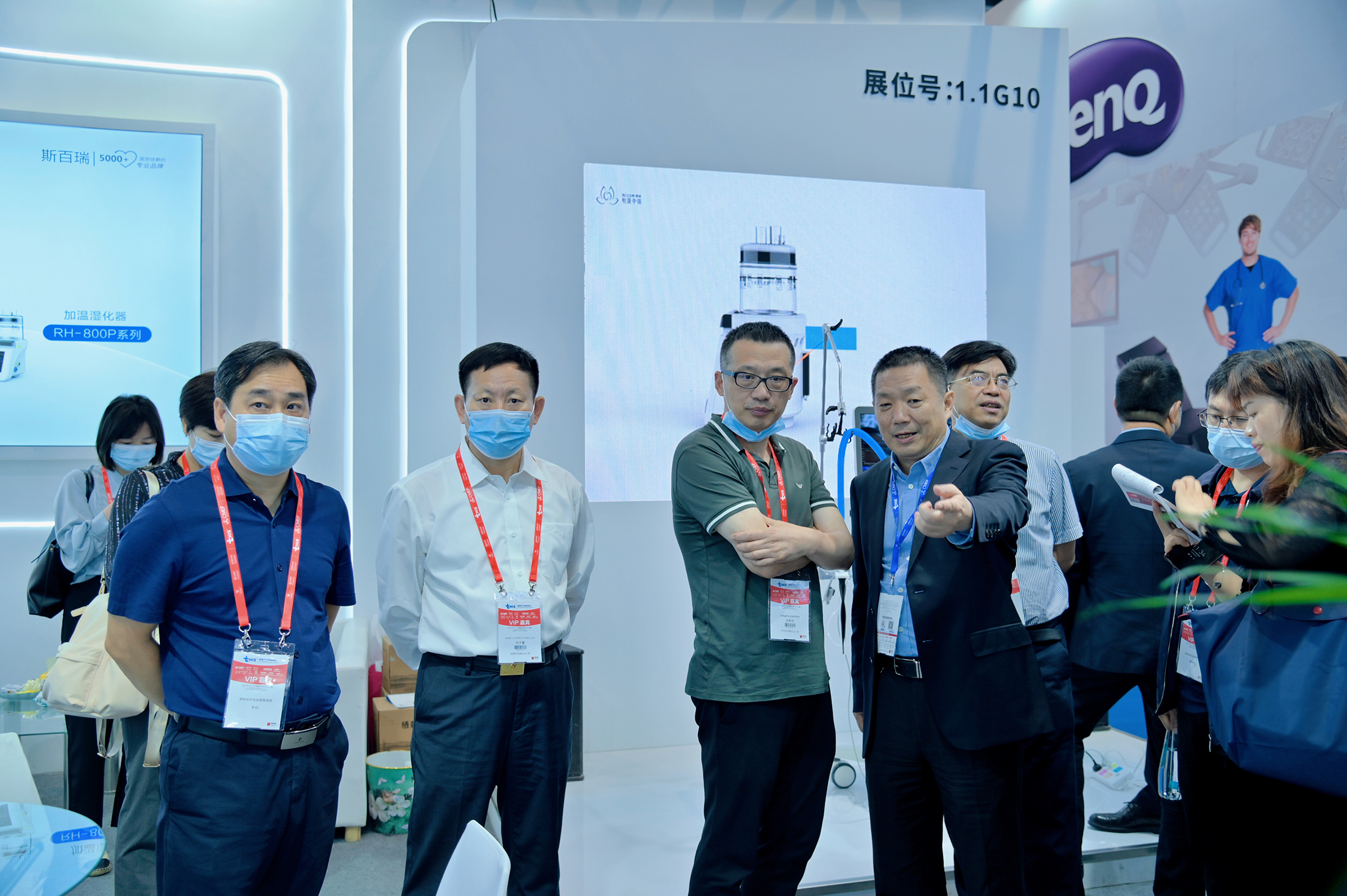 發(fā)布會上的5款“閃耀新星”也在展會上震撼亮相,分別是家用高流量無創(chuàng)呼吸濕化治療儀OH-50/30系列、高端重癥無創(chuàng)呼吸機T600、高流量無創(chuàng)呼吸濕化治療儀OH-80系列、高流量耗材H-180M系列和加溫濕化器RH-800P系列,引得很多合作伙伴、專家教授駐足參觀體驗。