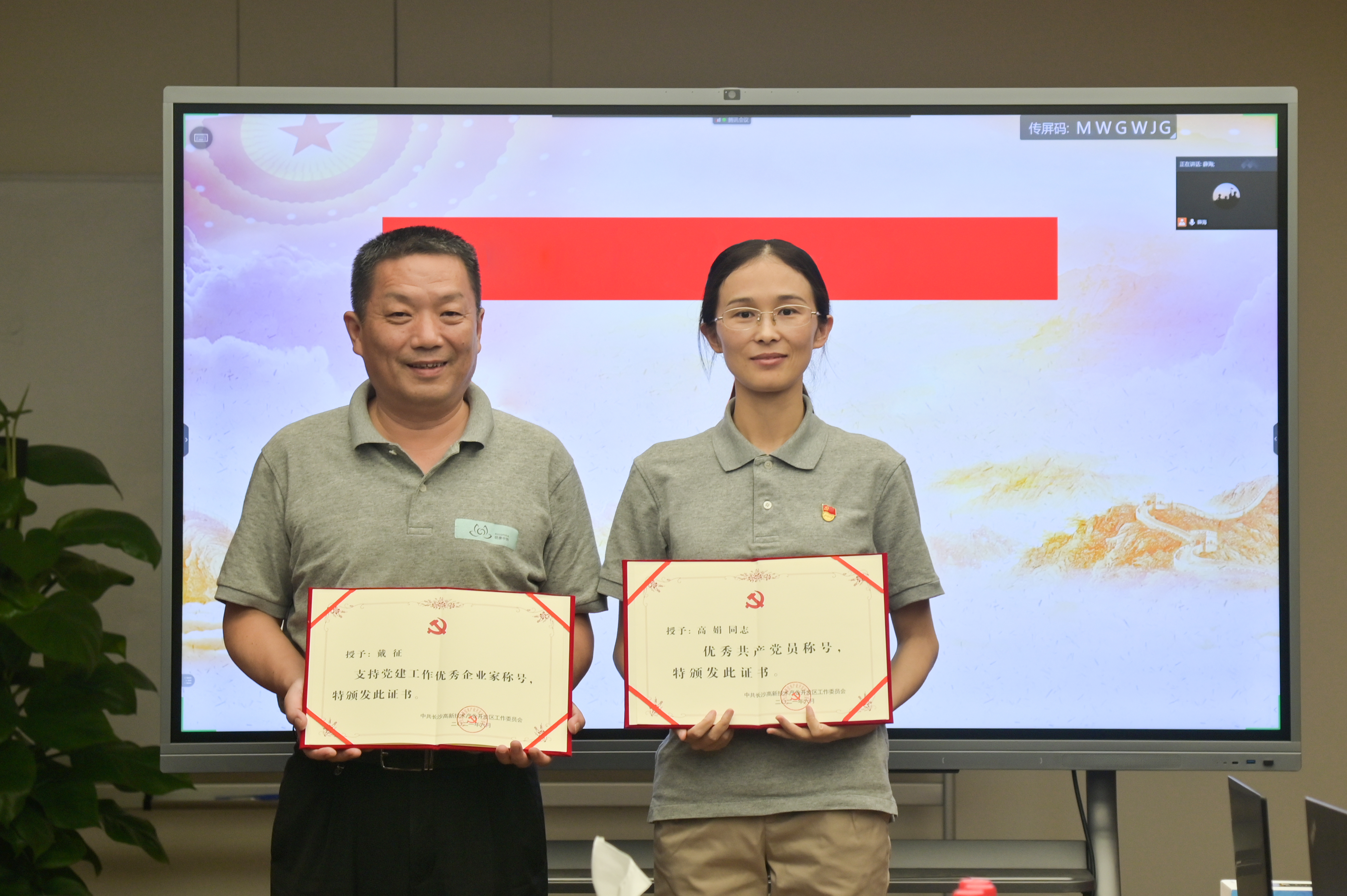 明康中錦黨支部書記高娟和董事長戴征分別榮獲長沙市高新區(qū)授予的“優(yōu)秀共產(chǎn)黨員”及“支持黨建工作優(yōu)秀企業(yè)家”稱號。