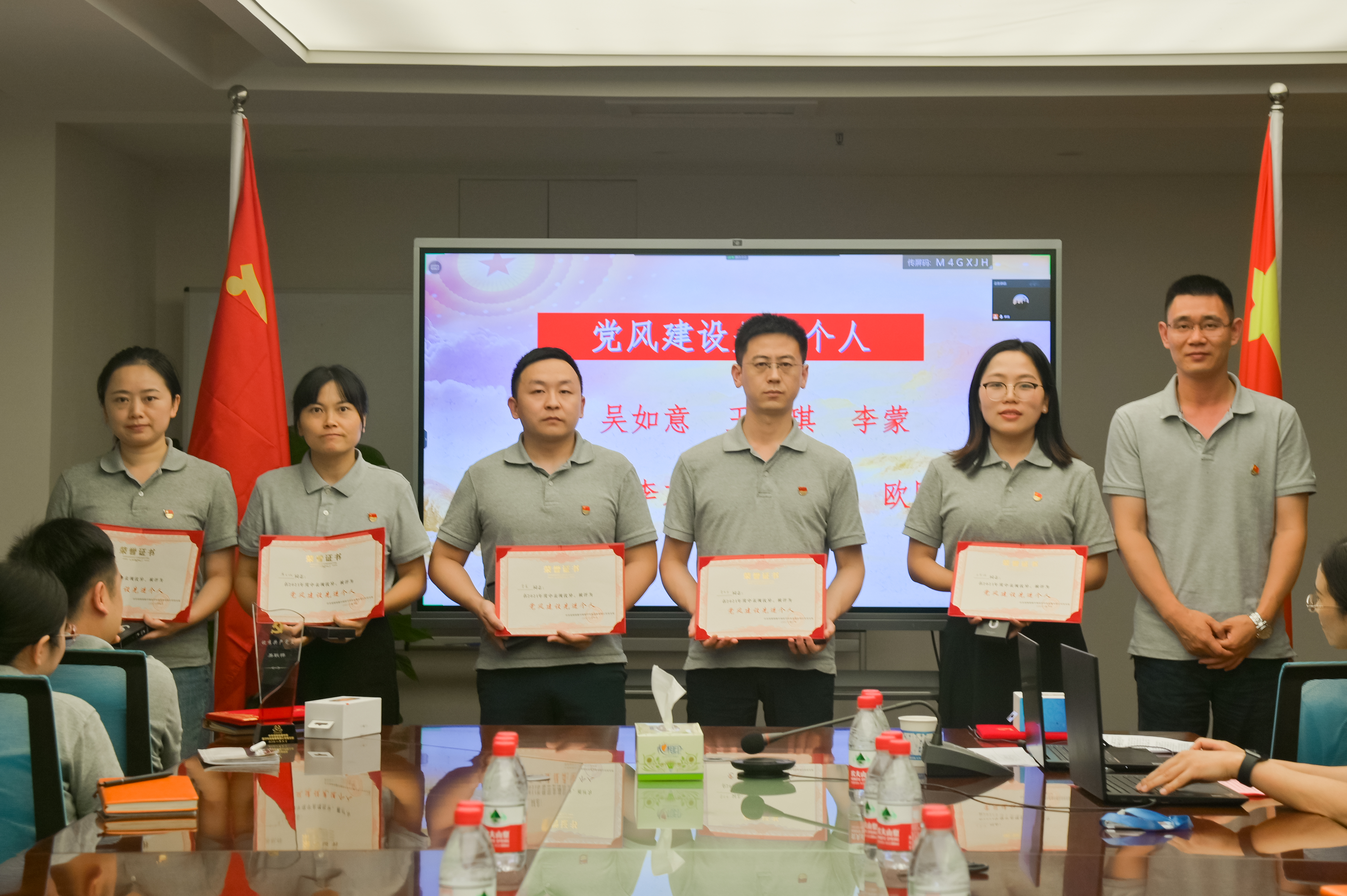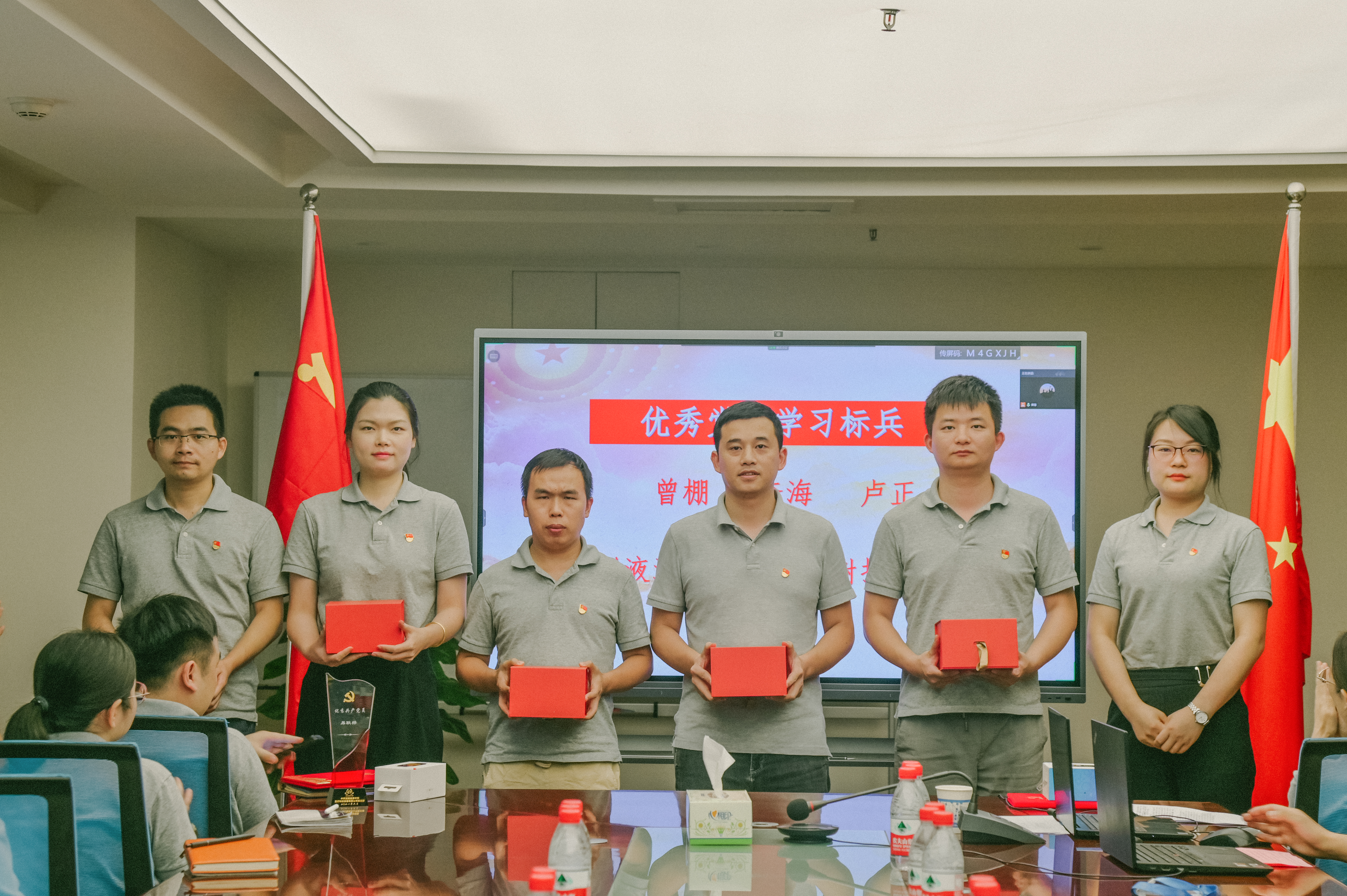 在會議上,宣讀了公司表彰決定,授予王曉波、易耿樺、王光榮、李偉利、謝凱5名同志“優(yōu)秀共產(chǎn)黨員”稱號,授予高娟、文紅玉等4名同志“優(yōu)秀黨務(wù)工作者”稱號。同時在會議中,還表彰了一批黨風(fēng)建設(shè)先進(jìn)個人、優(yōu)秀黨史學(xué)習(xí)標(biāo)兵、優(yōu)秀入黨積極分子。獲獎代表莊嚴(yán)地接過榮譽(yù)證書,王曉波、易耿樺、文紅玉、鐘麗娟等依次進(jìn)行代表發(fā)言,現(xiàn)場氣氛隆重?zé)崃?,掌聲?jīng)久不息。