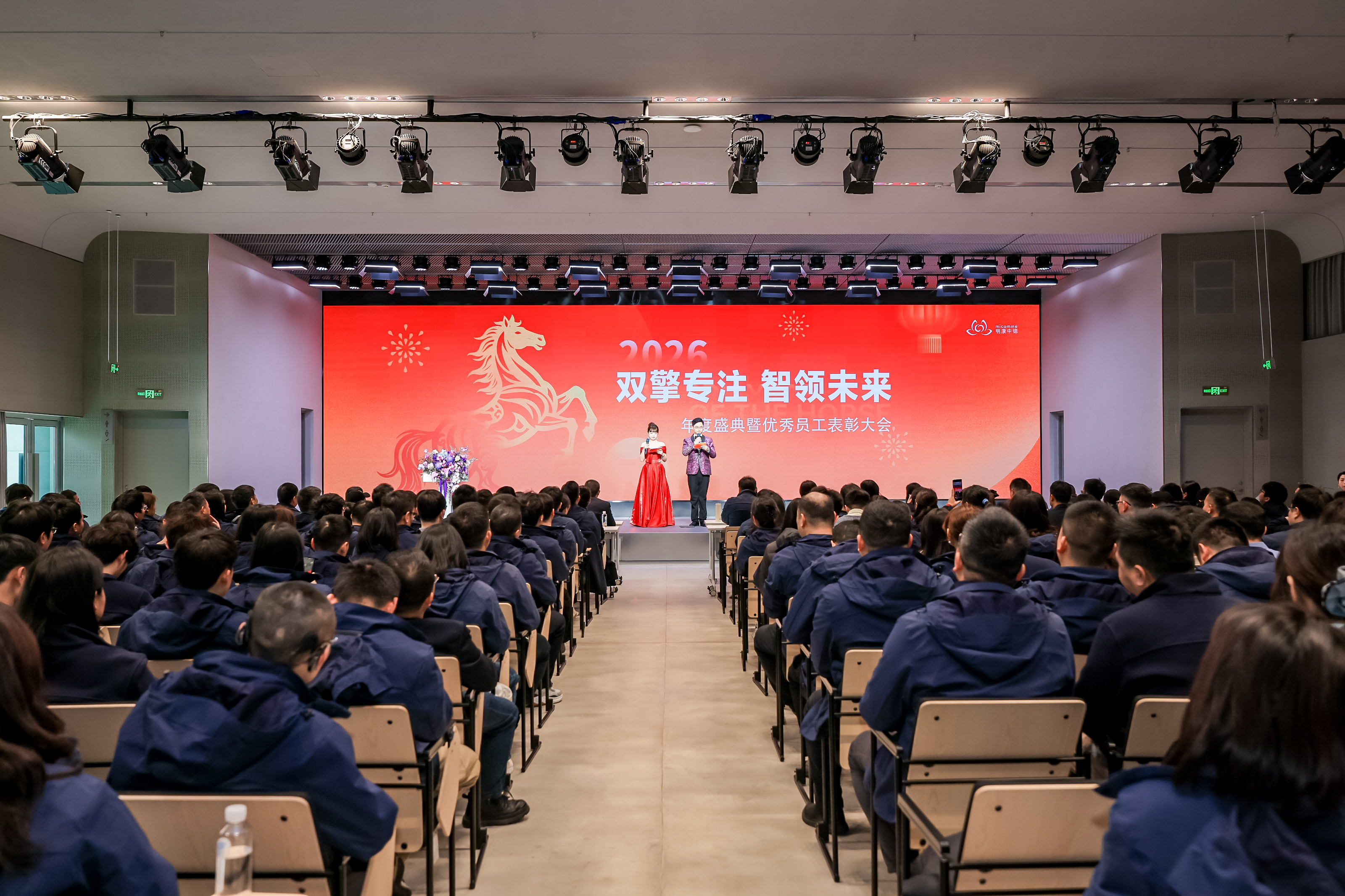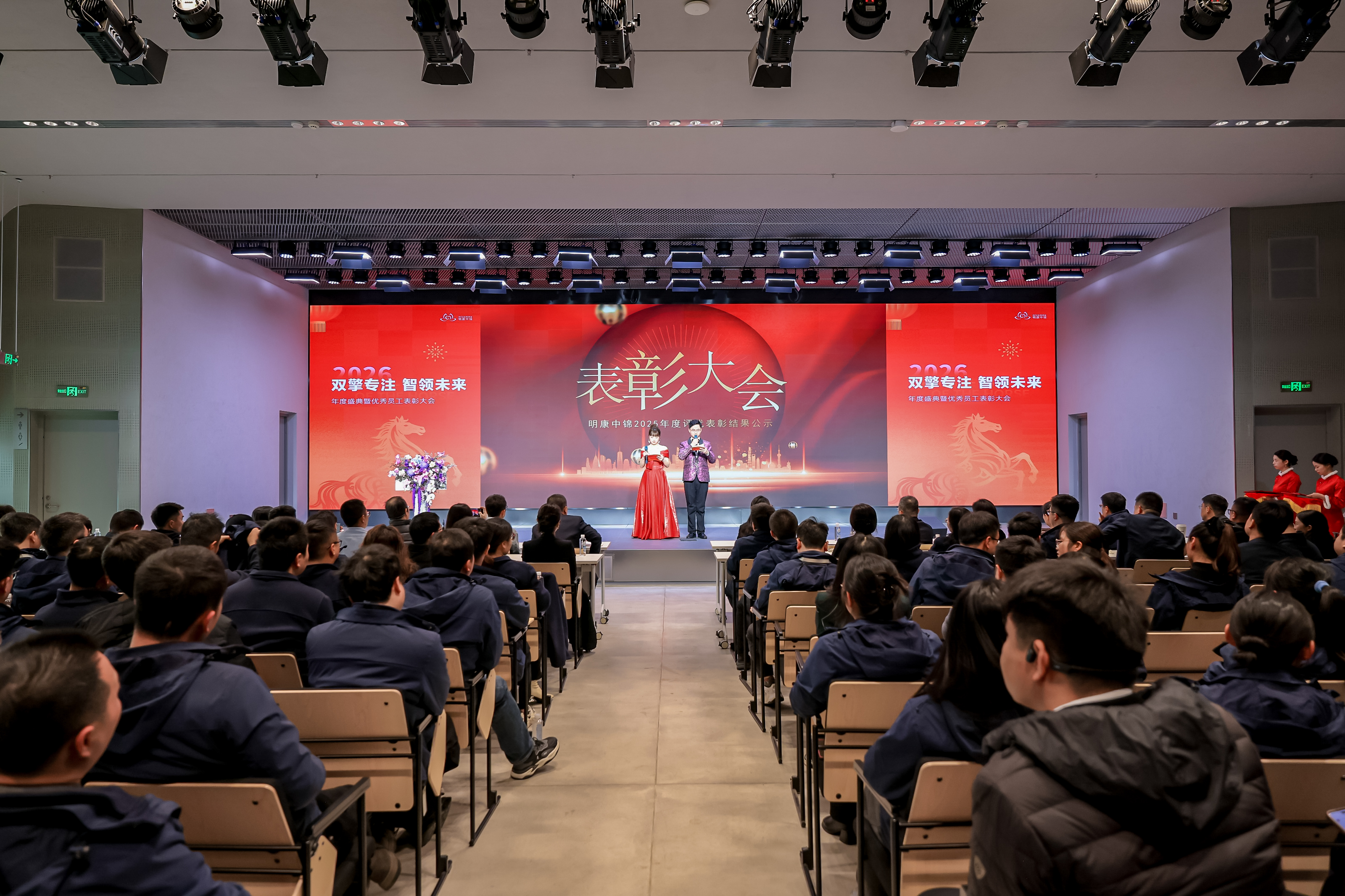 歲序更替,華章日新。2026年2月8日,明康中錦“雙擎專注 智領(lǐng)未來”年度盛典暨優(yōu)秀員工表彰大會隆重舉行。全體明康人歡聚一堂,回望2025年的奮斗足跡,共啟2026年的嶄新篇章。年會在莊嚴的國歌聲中拉開序幕。全體明康人肅立齊唱,目光堅定,展現(xiàn)出明康人不忘初心、砥礪前行的堅定信念。
