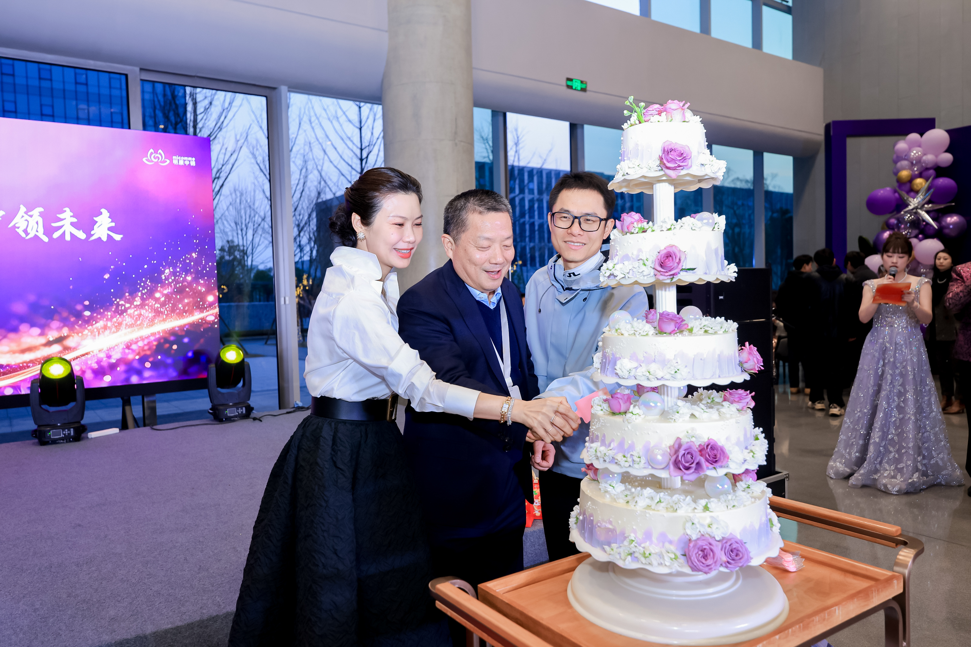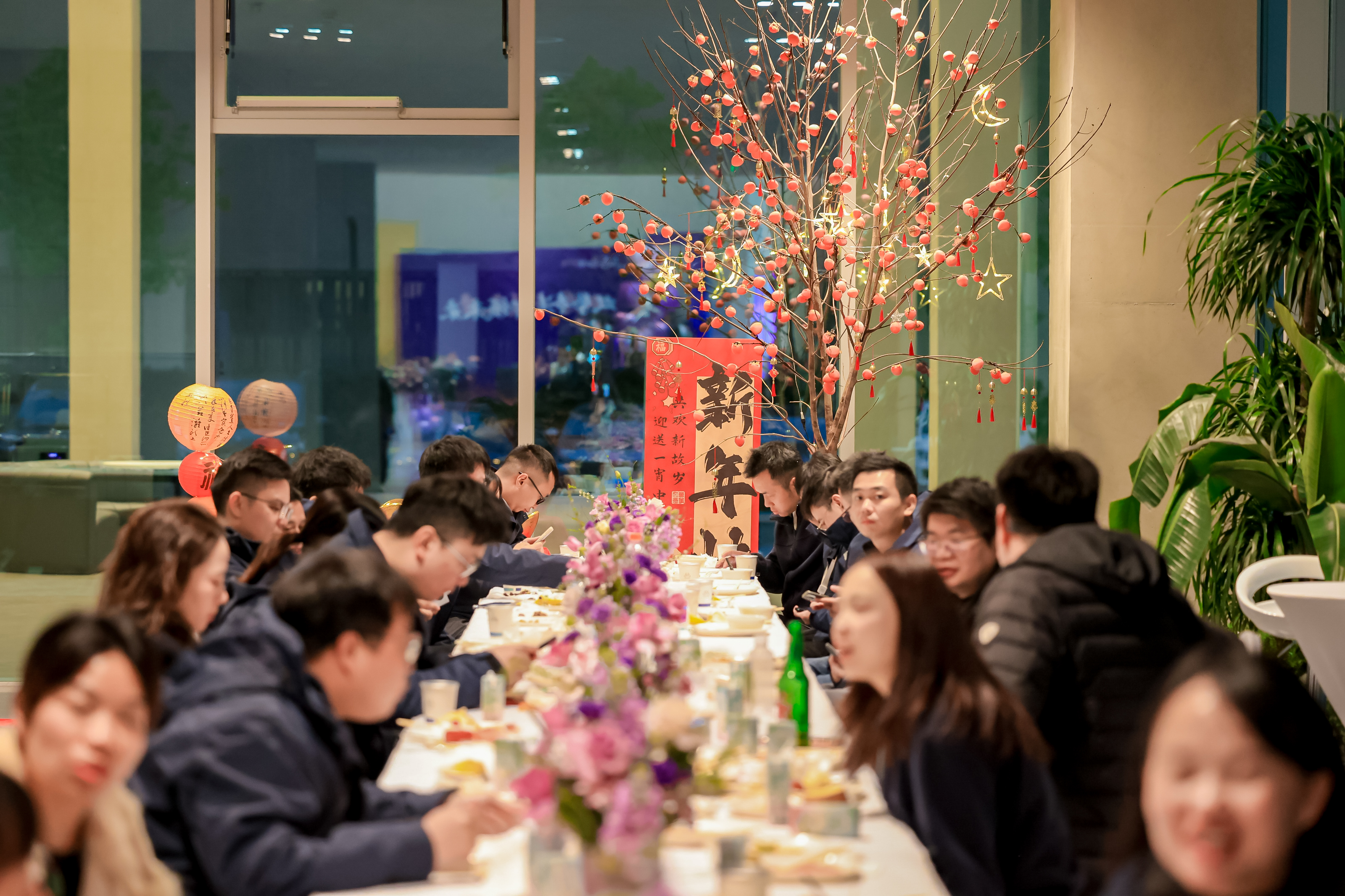 總結(jié)表彰大會后,溫馨而熱鬧的歡慶晚宴拉開帷幕。會場張燈結(jié)彩,喜慶祥和。董事長戴總攜管理層共同舉杯,切蛋糕、開香檳,向大家致以新春的美好祝福。佳肴美酒,笑語歡聲,其樂融融。