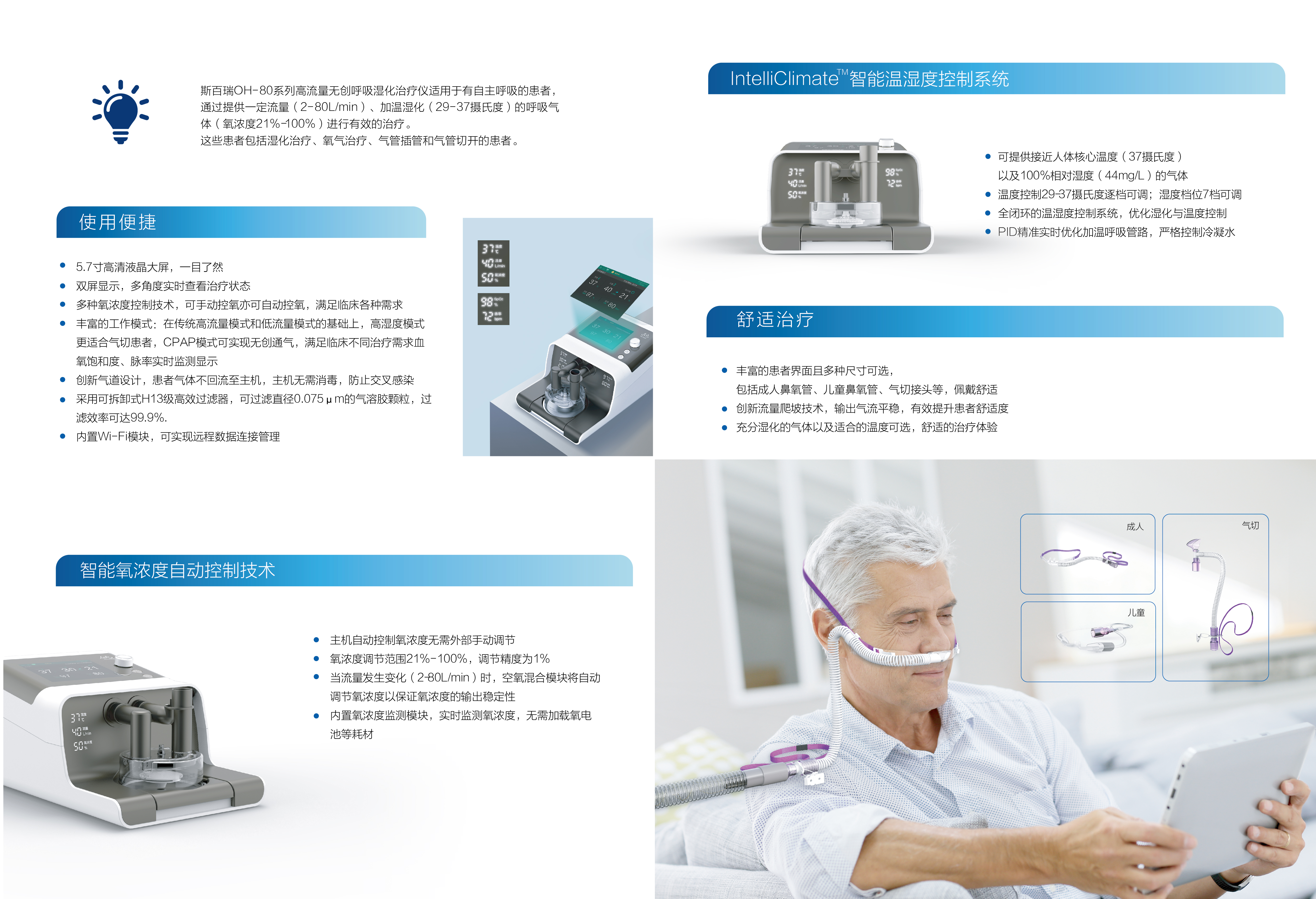 多種氧濃度控制技術(shù);豐富的工作模式;血氧飽和度、脈率實(shí)時(shí)監(jiān)測顯示