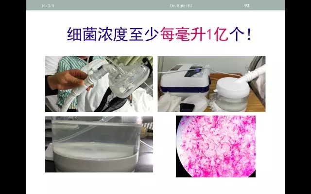 患者因為重癥肌無力,進(jìn)行無創(chuàng)機(jī)械通氣,但霧化水的容器,近2個月從未進(jìn)行消毒。觀察霧化罐的水,竟然漂浮好多的棉絮狀物,頓覺問題的嚴(yán)重性。