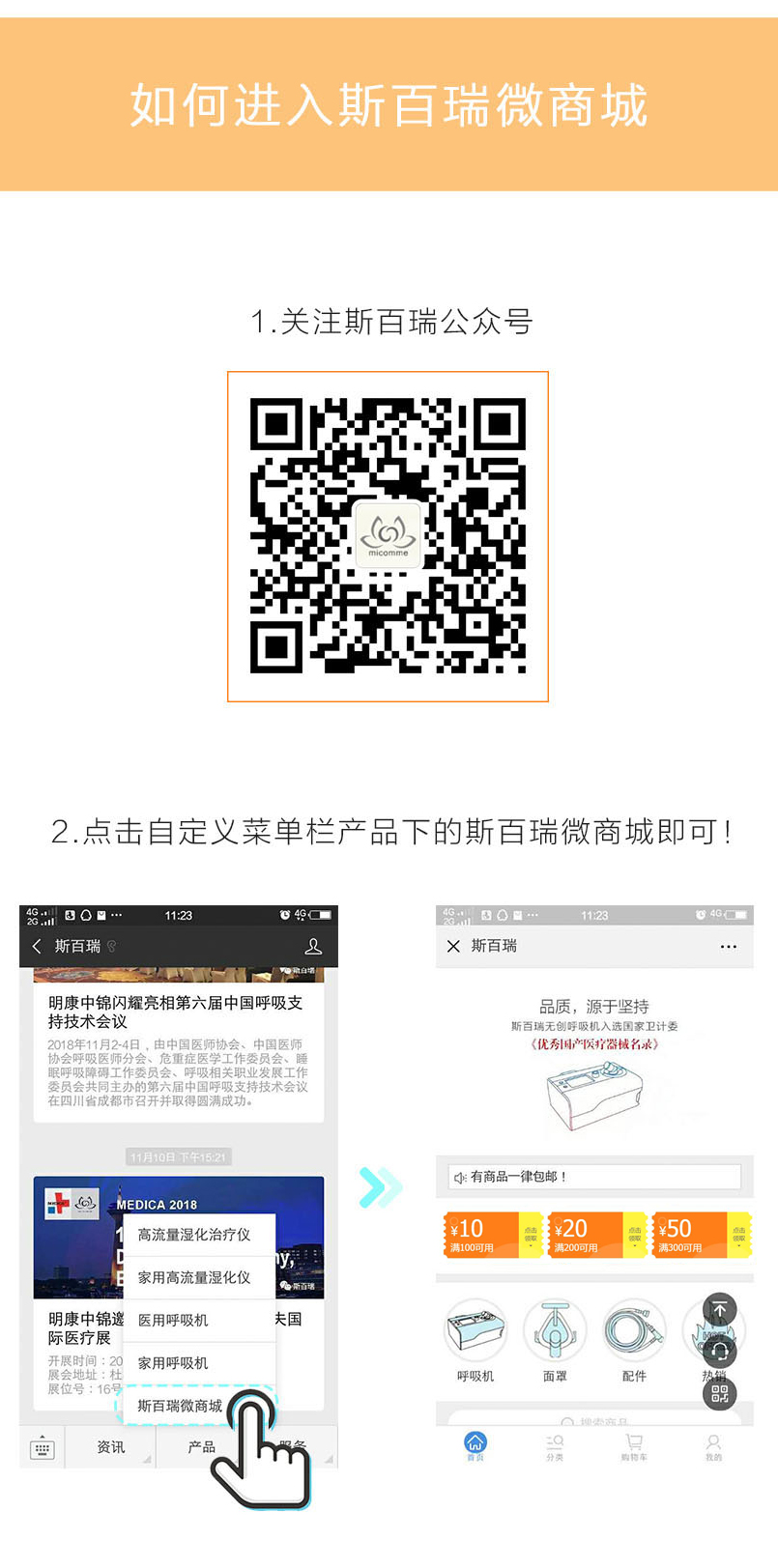 關(guān)于呼吸機(jī)管路、面罩等配件購(gòu)買(mǎi)可以進(jìn)入斯百瑞微商城了解詳情哦~~~